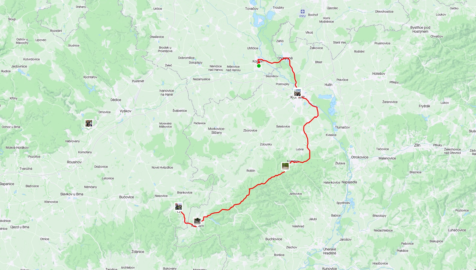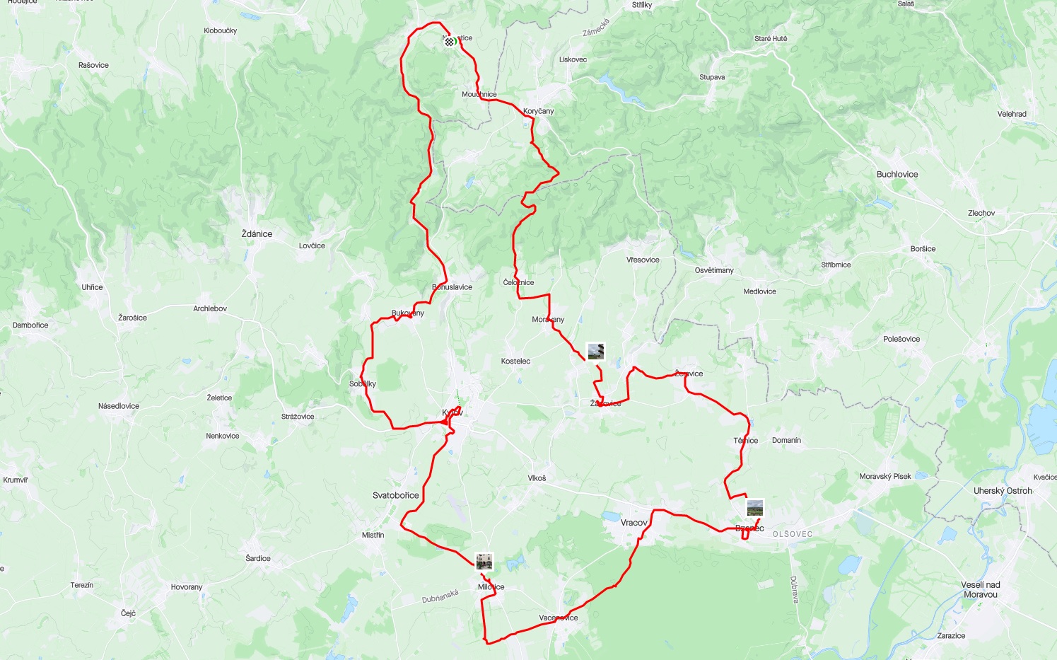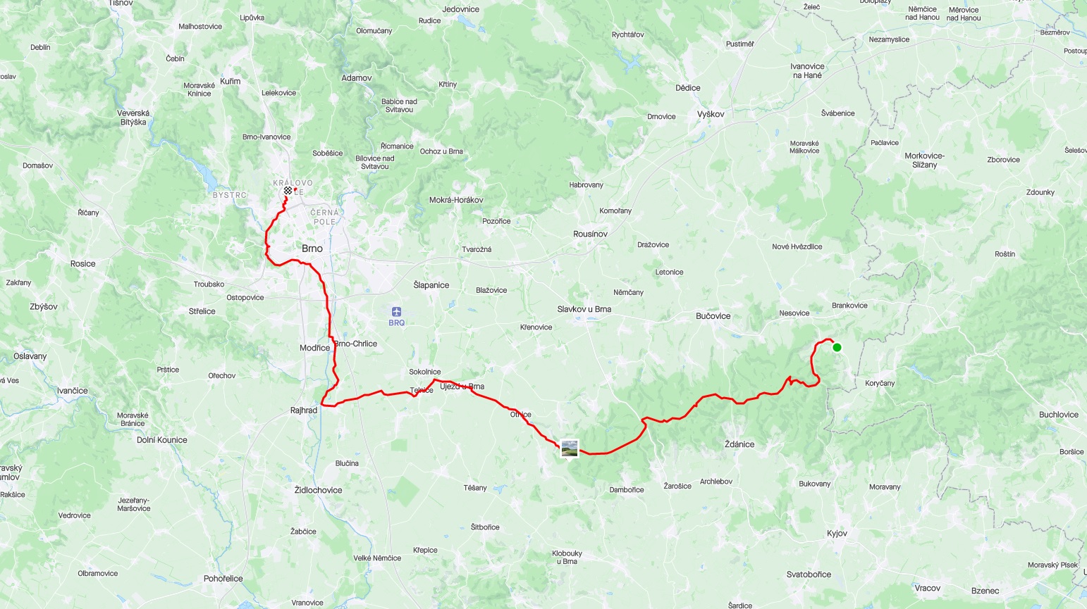 The next day, they set out from Nemotice through Snovídky, Lovčičky, Otnice, Újezd u Brna, Telnice, Otmarov, Rajhradice and Rebešovice back to Brno, when they drove another 70 km along this route.