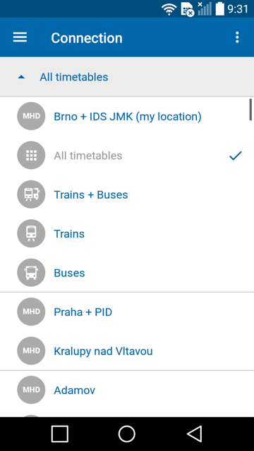 For the Android platform on the above-mentioned Google Play is also available application MHD Tabule, which allows to display the departures of public transport timetables from the selected stop in the selected direction, either directly in the application or via a widget. Among other things, it allows the download of the timetables data to off-line mode.