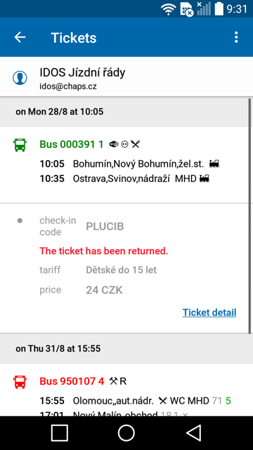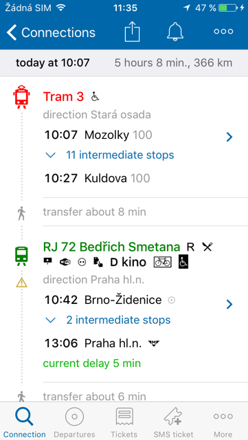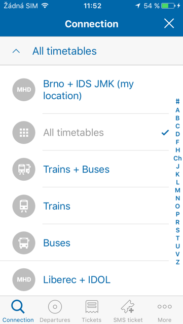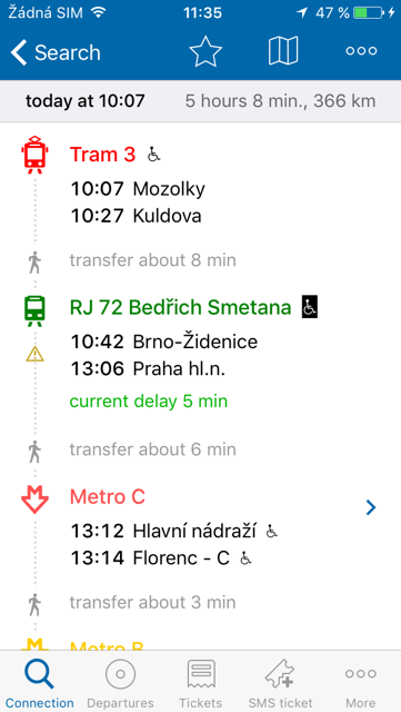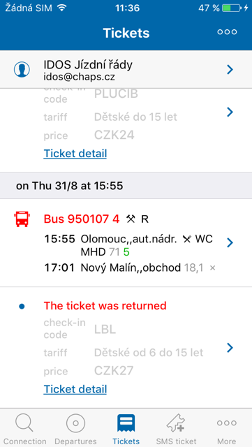 Electronic timetables adjusted for use on smart phone mobile devices with the operation systems Android or iOs. Our applications from the IDOS.cz family allows to purchase travel documents for most of the serrched connections.