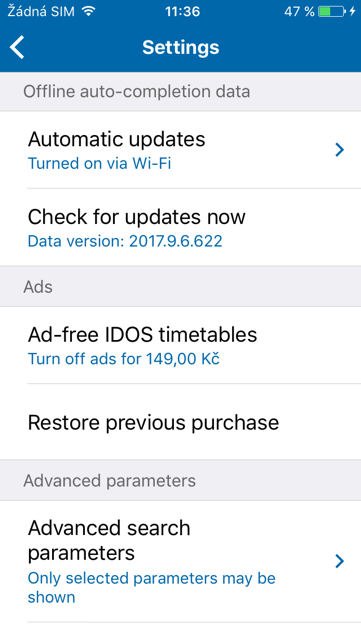 - License - It contains license terms and conditions for IDOS. (in Czech language only)